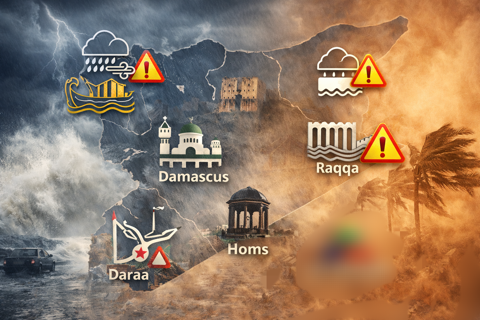 تحذير جوي عاجل: أمطار غزيرة ورياح عاصفة تضرب سوريا اعتبارًا من مساء الأربعاء