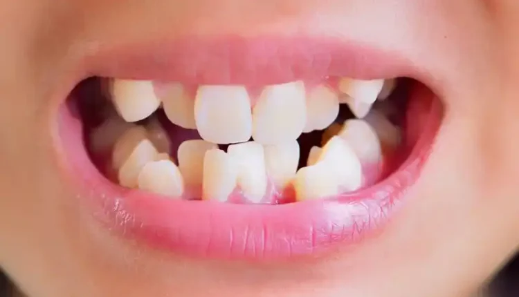 – تكون الأسنان متقاربة ومتراكبة، حيث يحدث ازدحام الأسنان نتيجة لاختلاف حجم الأسنان أو قلة حجم الفك.